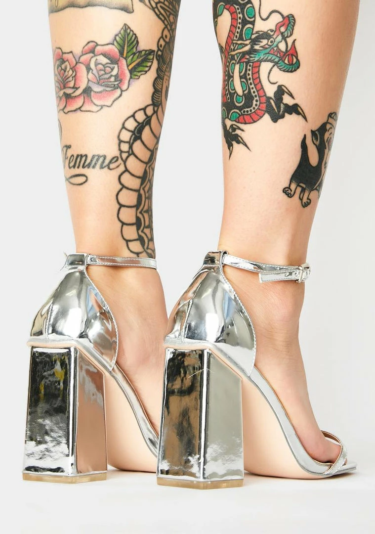 serve Γ’ΒΒem sassy lewks, babe. These block heels have flirty peep toes, a shimmerinΓ’ΒΒ mirror material NΓ’ΒΒ side buckle closures.