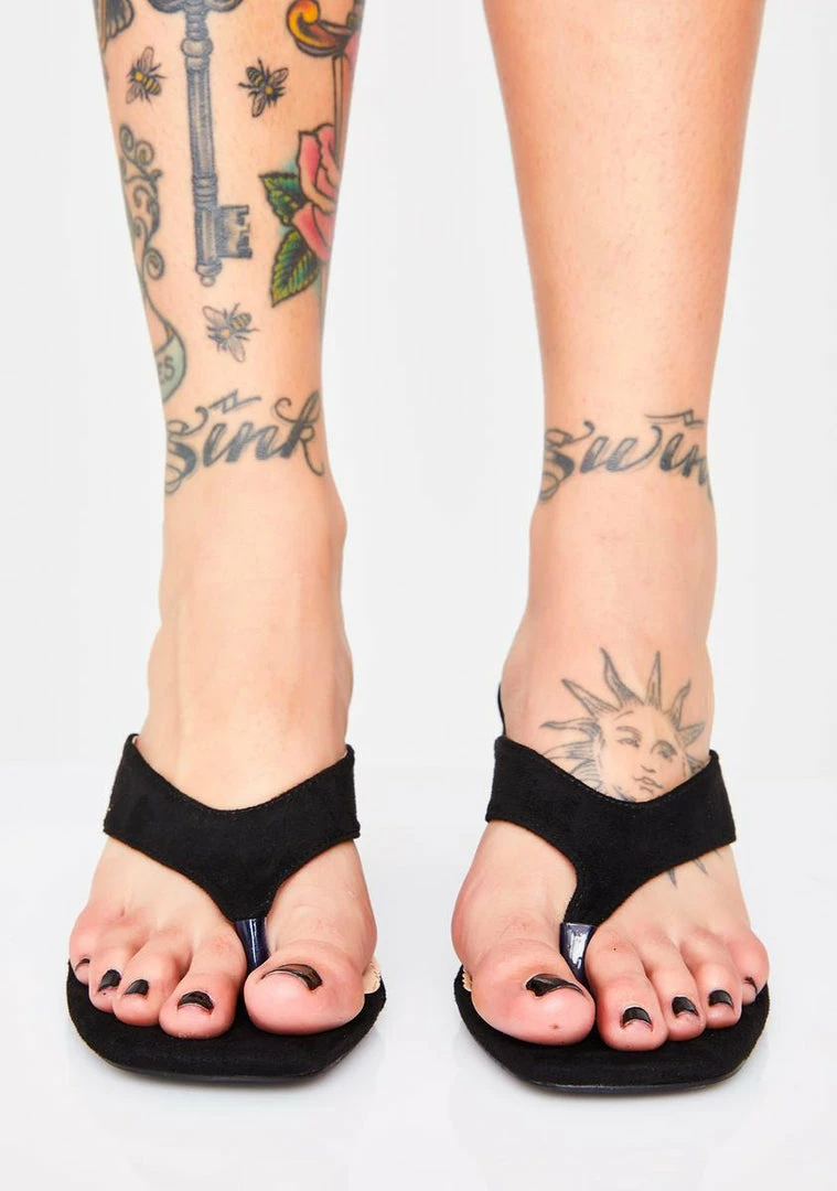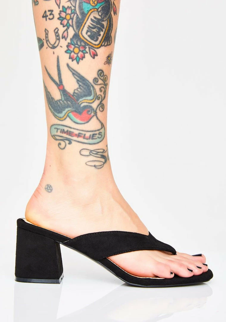 like get a clue, sis! Hair flip on รขยยem in these sassy AF heels that have a thong design, square toes Nรขยย block heels to drive รขยยem cray cray.