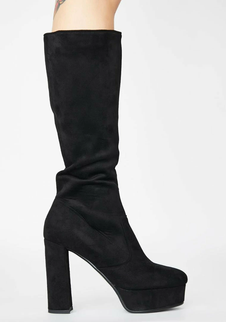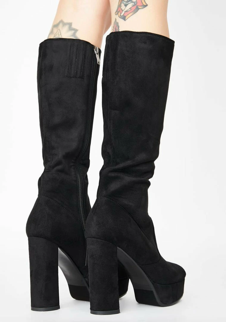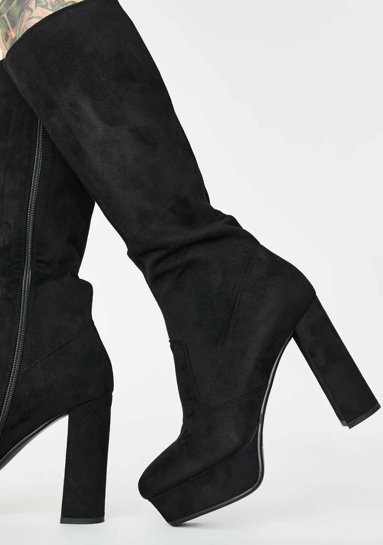 strut the streets, babe. Look hawt AF in these knee high boots that have rounded toes, supa soft vegan suede material Nรขยย side zip closures.