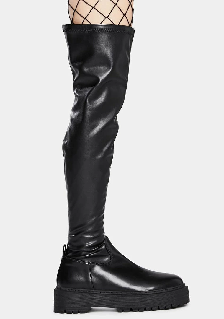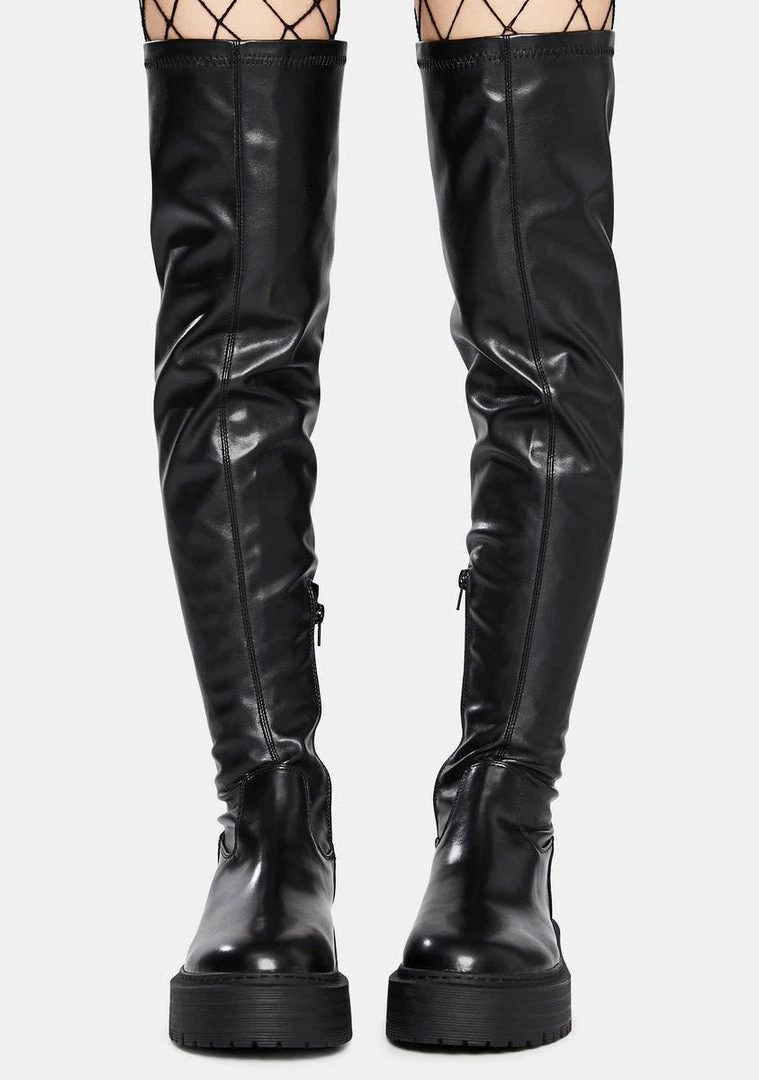 have a faux leather construction, side zipper closures, and thick treaded soles.