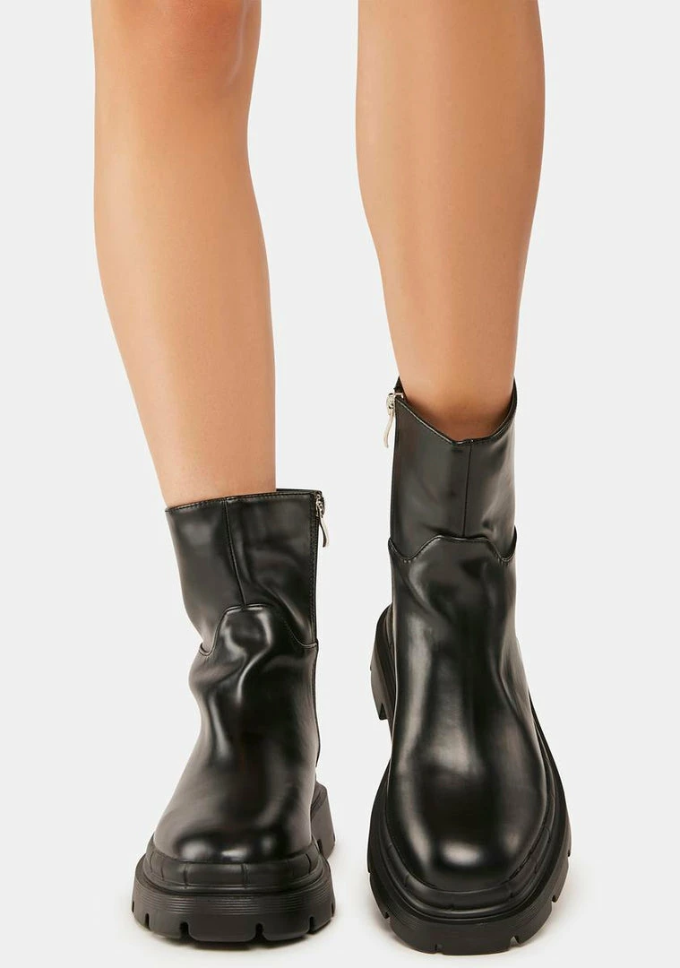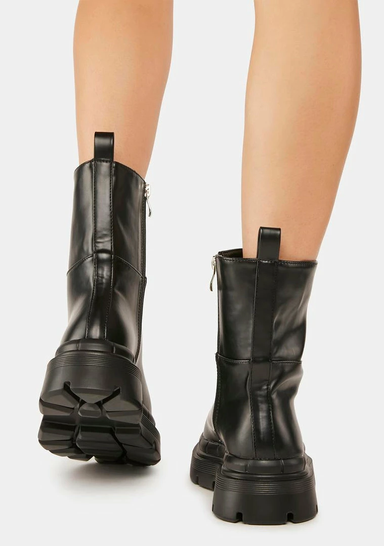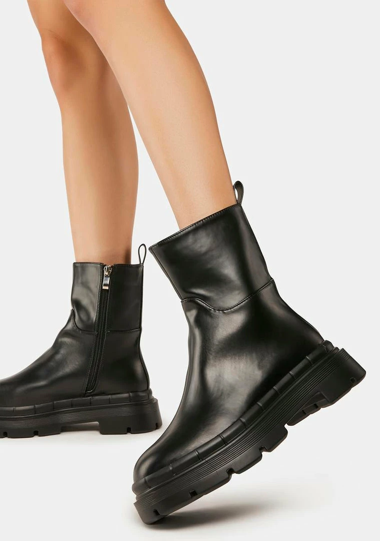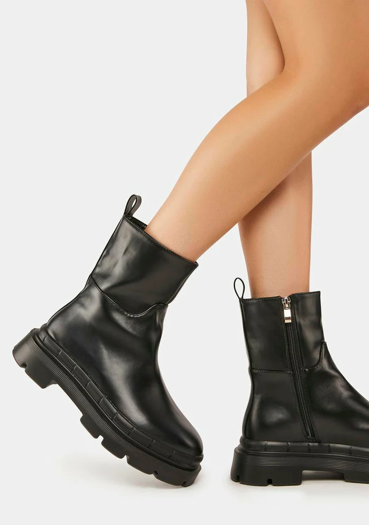 cuz you’re taking over. These boots come in a vegan leather construction, with a chunky sole, back pull tabs, and inner zip closures.