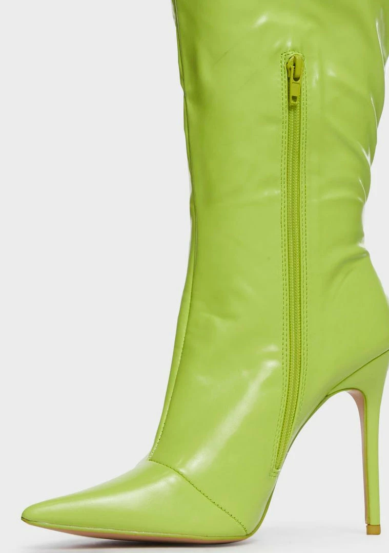 cuz you won’t settle for second best. These boots come in a vegan leather construction, with a pointed toe, stiletto heel, and inner zip closure.