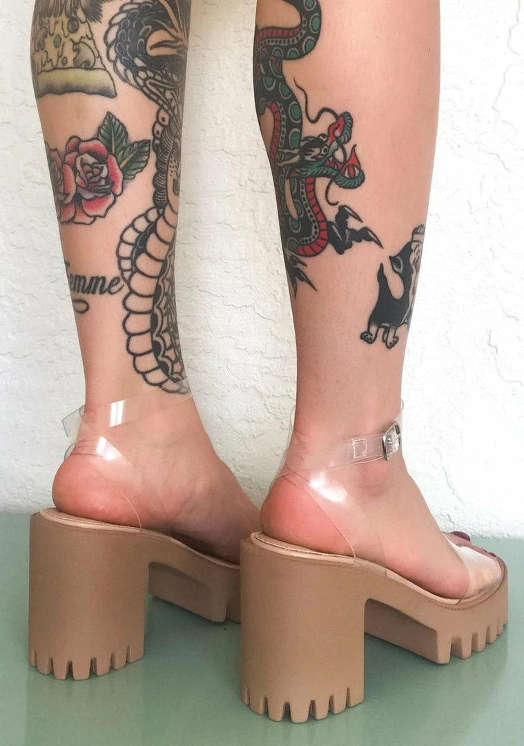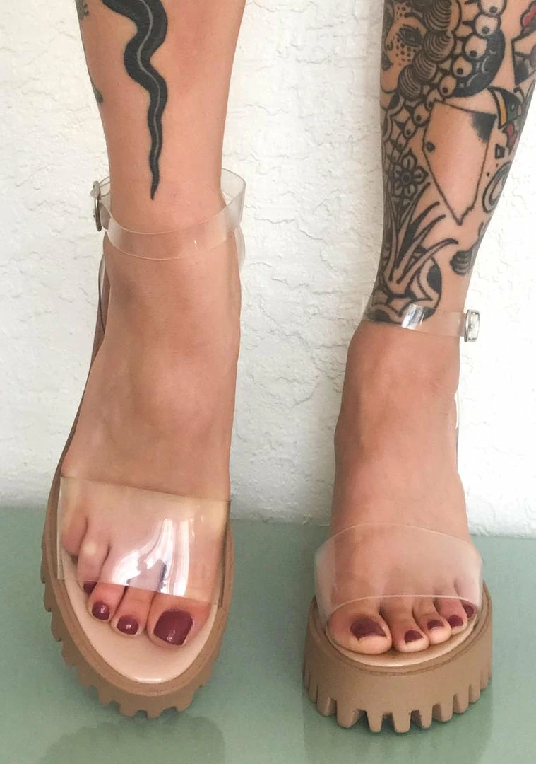 cuz youΓ’ΒΒre always down for whatever! Do the most in these dope platform sandals that have treaded soles, block heels, peep toes and clear straps with side buckle closures.