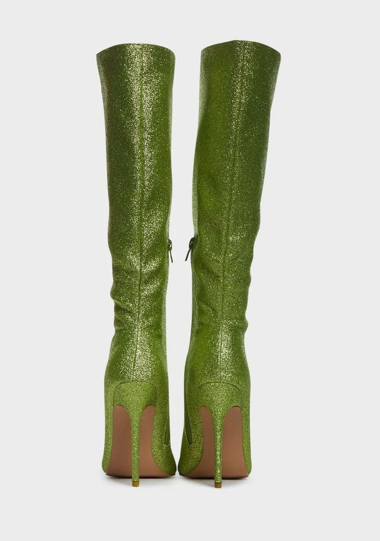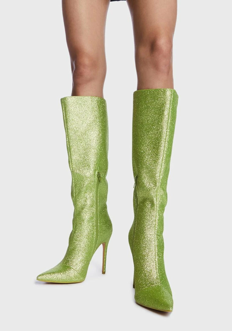cuz you’re a hustler. These boots come in a glitter construction, with a pointed toe, stiletto heel, and inner zip closure.