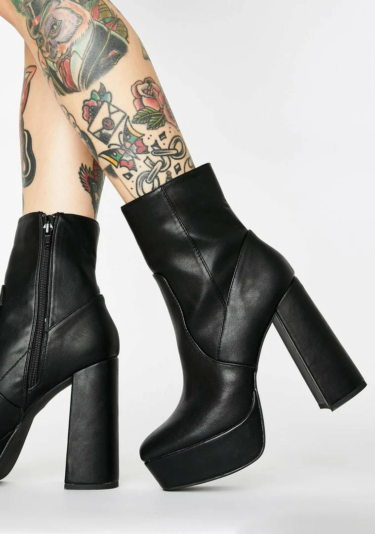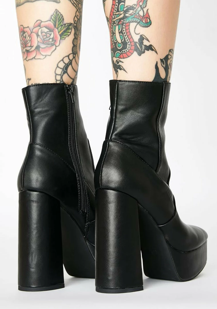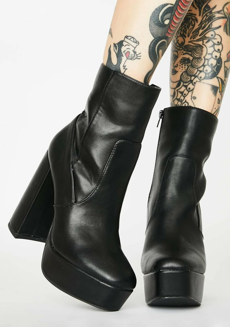 show âem who’s boss, bae. Look dope AF in these ankle platform boots that have a supa soft material, rounded toes Nâ side zip closures.