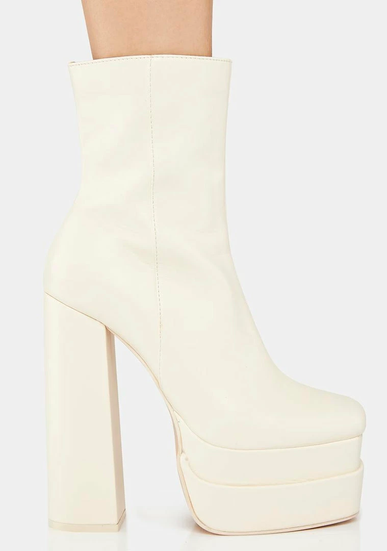 cuz you have so many followers. These ankle boots have a vegan leather construction, double stacked platform soles, block heels, and side zip closures.