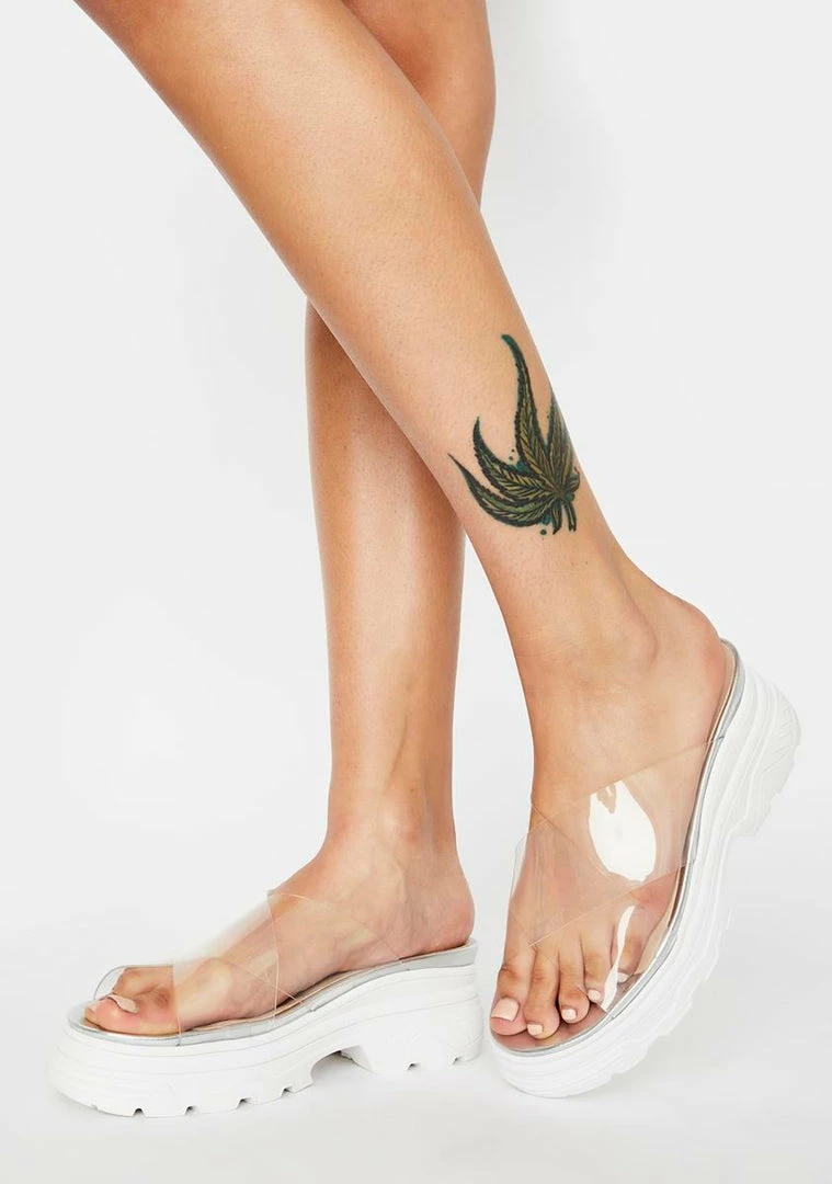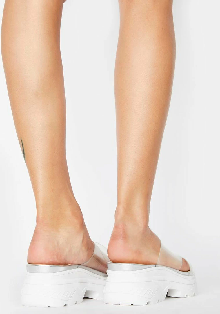 got ya buzzin’, babe! You’re making moves poolside in these platform slide sandals that have clear cross straps, peep toes, and treaded soles.