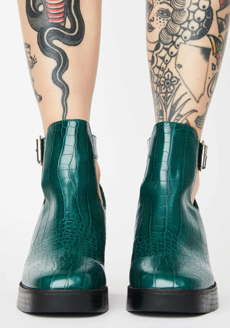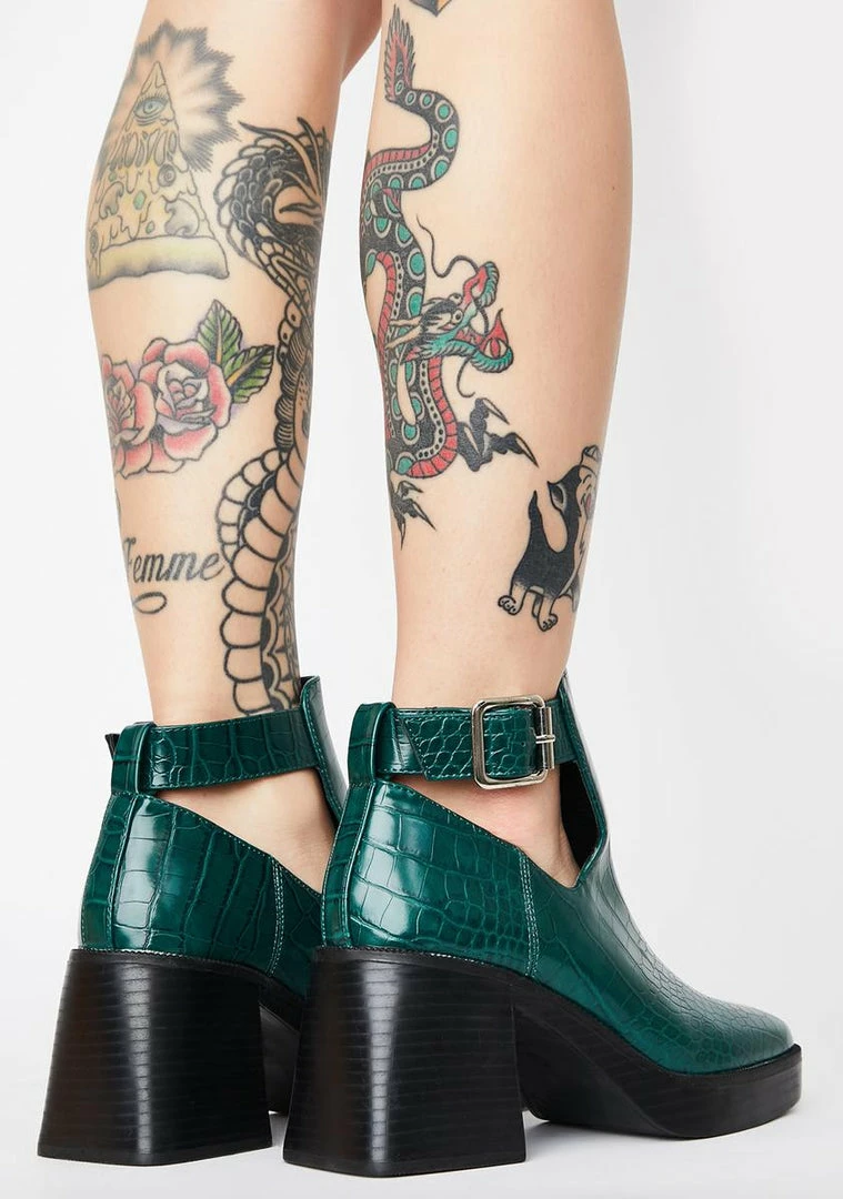tell รขยยem to go kick rocks. Look dope AF in these block heels that have rounded toes, crocodile animal print all ova Nรขยย side buckle closures.