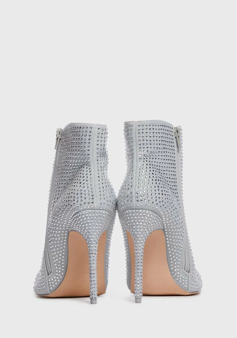 cuz it’s better to be overdressed. These wide width/wide calf boots have a vegan leather construction, rhinestones all over, inner zip closures, pointed toes, and stiletto heels.