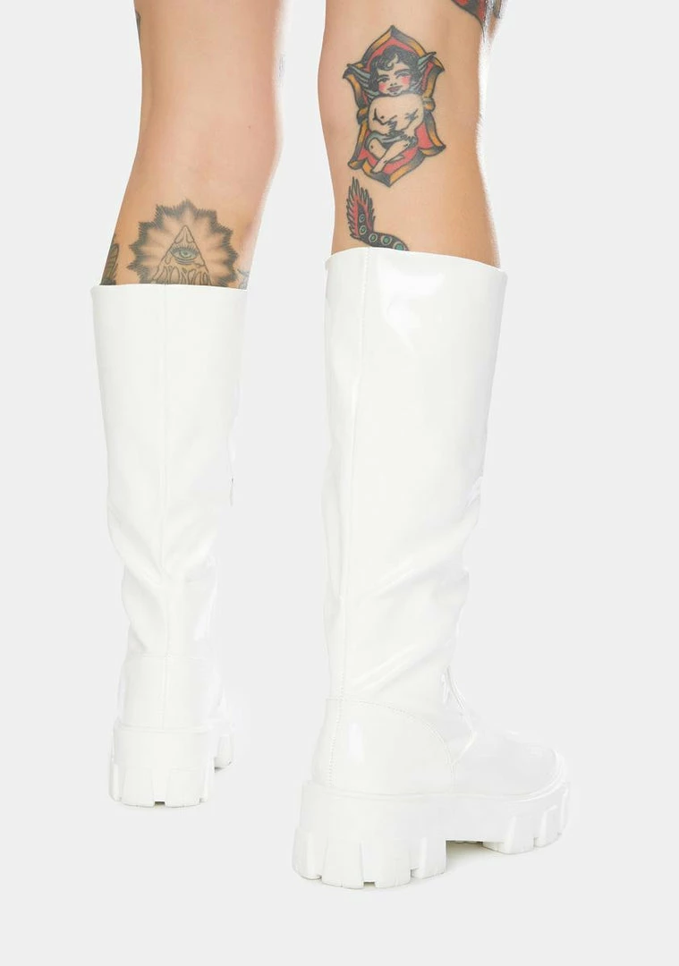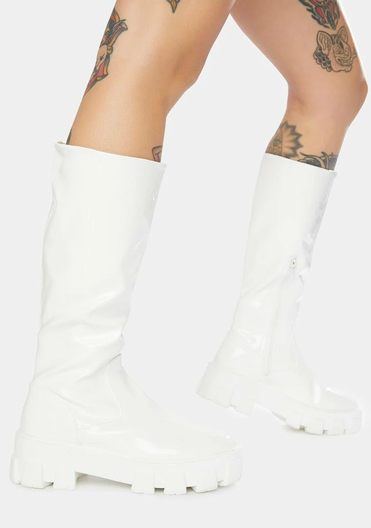good vibes only when youΓ’ΒΒre wearing these knee high boots that feature a smooth vegan leather construction, chunky treaded soles, rounded toes, and side zip closures.