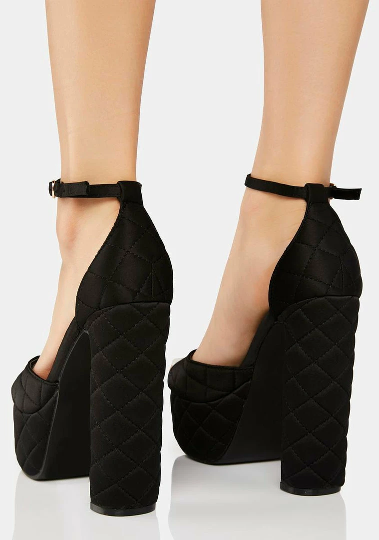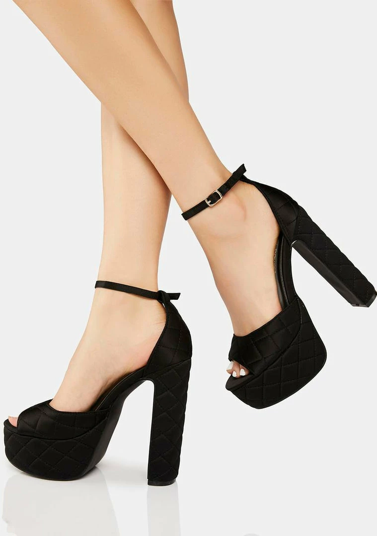 cuz you’re irresistible! These heels have a nylon construction, a quilted padded design, platform soles, block heels, and ankle buckle closures.