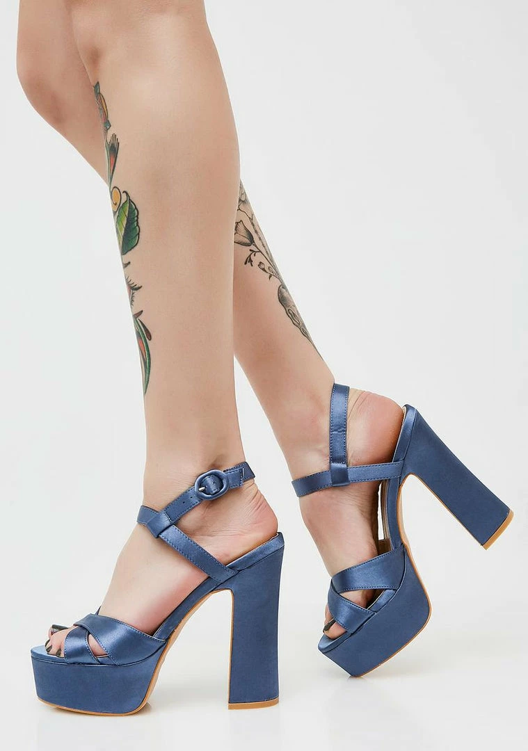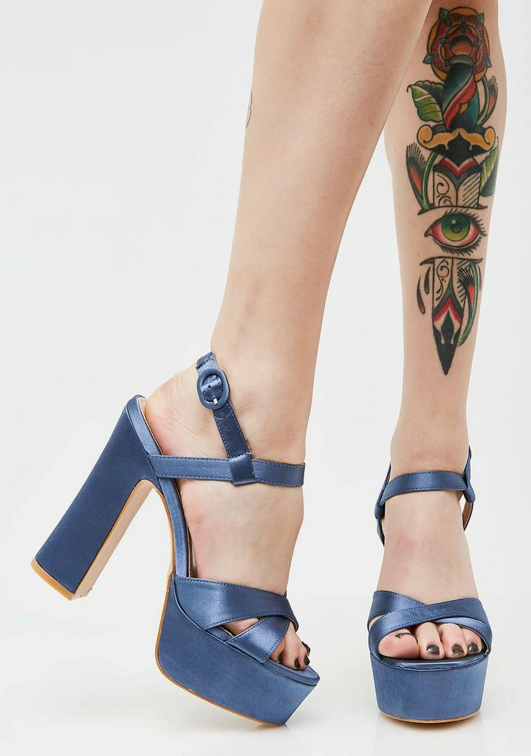 cuz you got emΓ’ΒΒ lookinΓ’ΒΒ babe. These satin platform bbs have crossover straps and buckle closures.