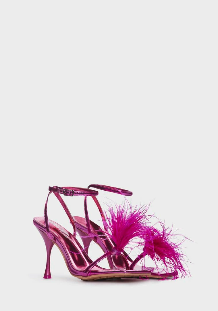 cuz you can’t be tamed. Make a statement with these heels that have a square toe design, stiletto heels, faux feather detailing, and ankle buckle closures.
