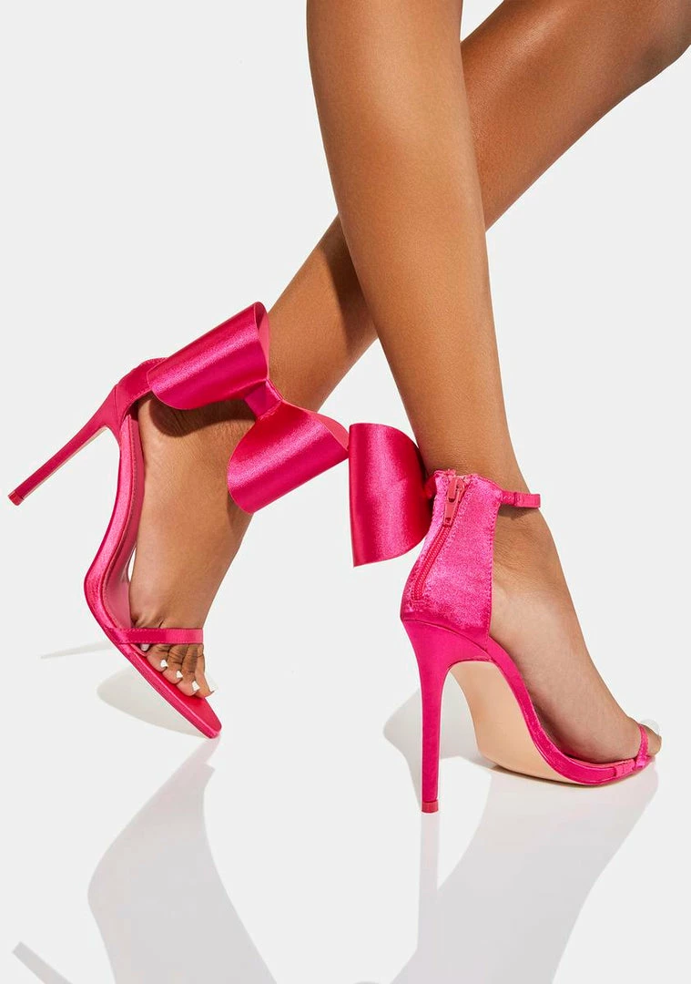 cuz weΓ’ΒΒre gonna party like itΓ’ΒΒs your birthday. Dance the night away in these stiletto heels that have a satin bow on the sides, peep toes, and back zip closures.