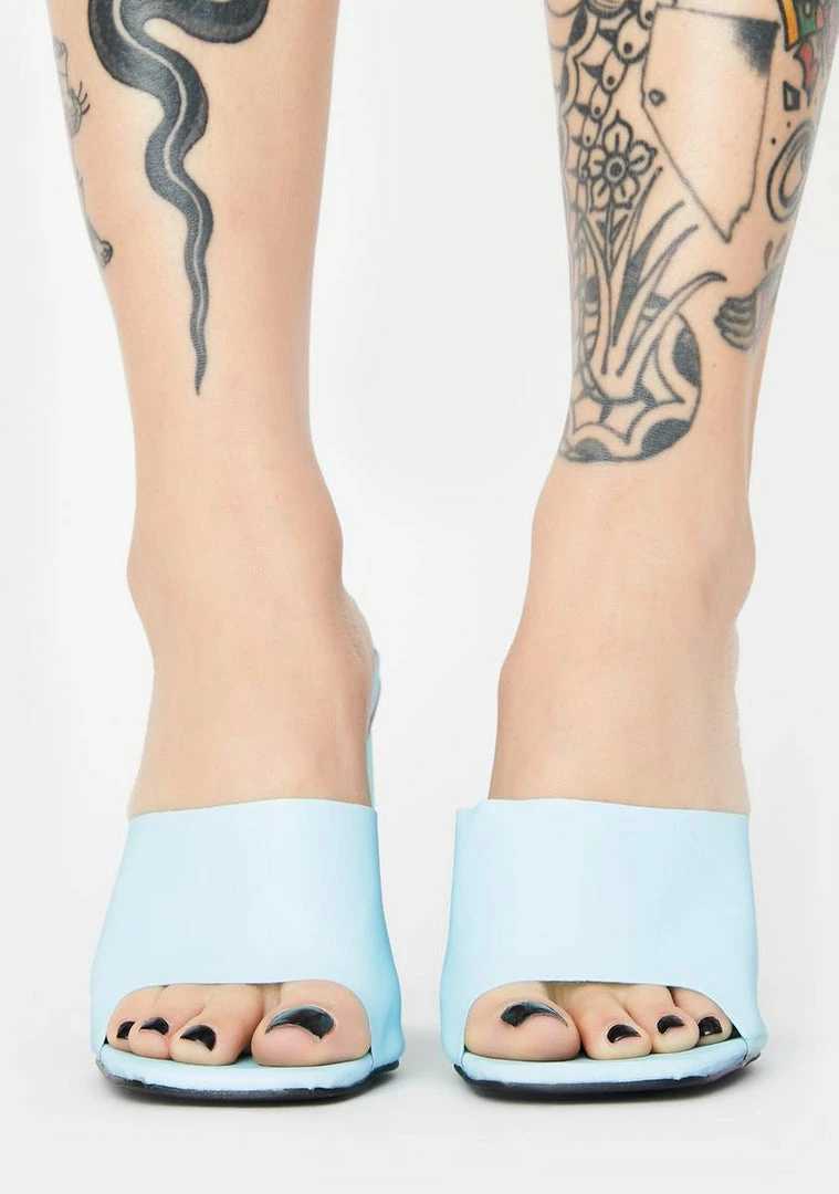 cuz yer catching รขยยem by surprise, babe. These mule style heels will light up your life with a peep toe detail, a square block heel, and a supa reflective shine.