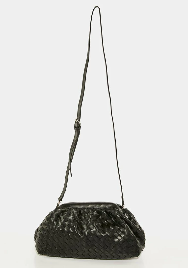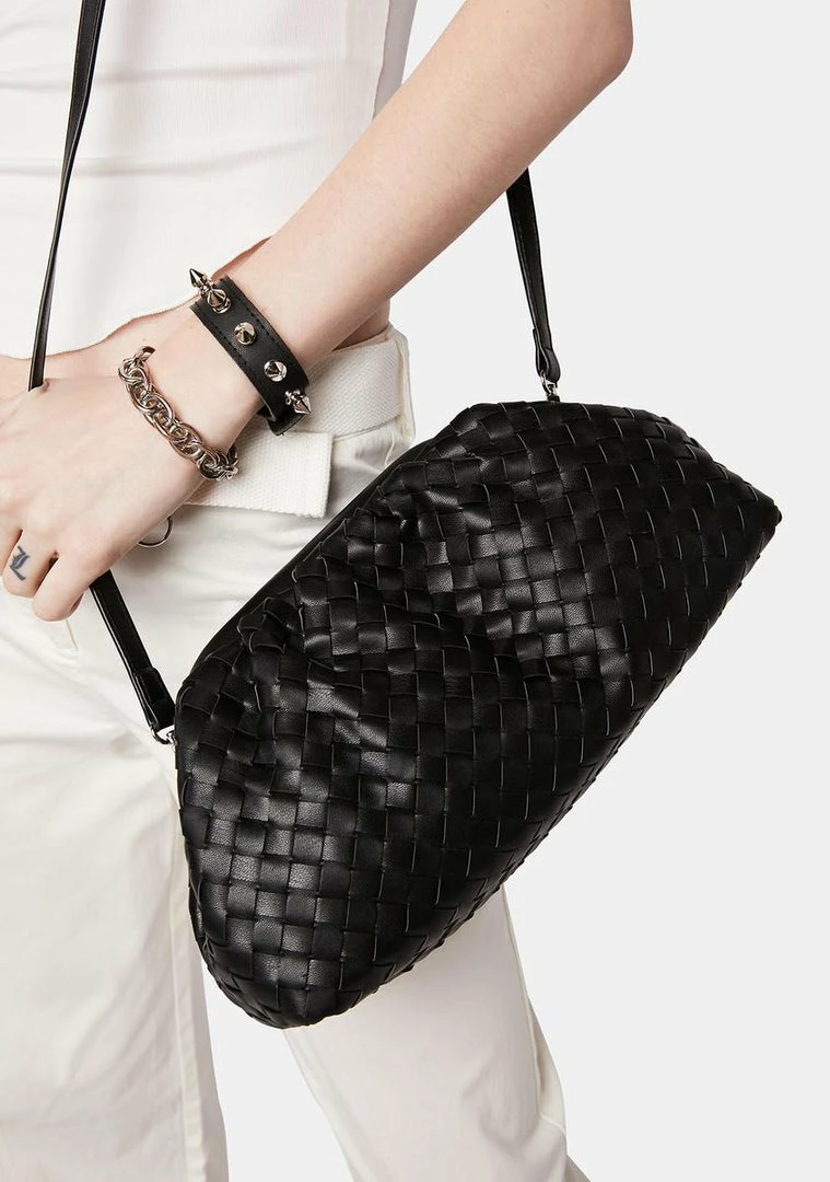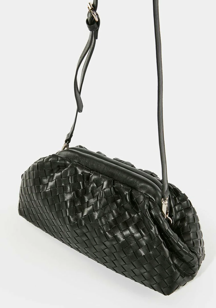 the cherry on top of your ‘fit! This handbag has a vegan leather construction, a woven design, and can be worn as a clutch or with the optional crossbody strap.