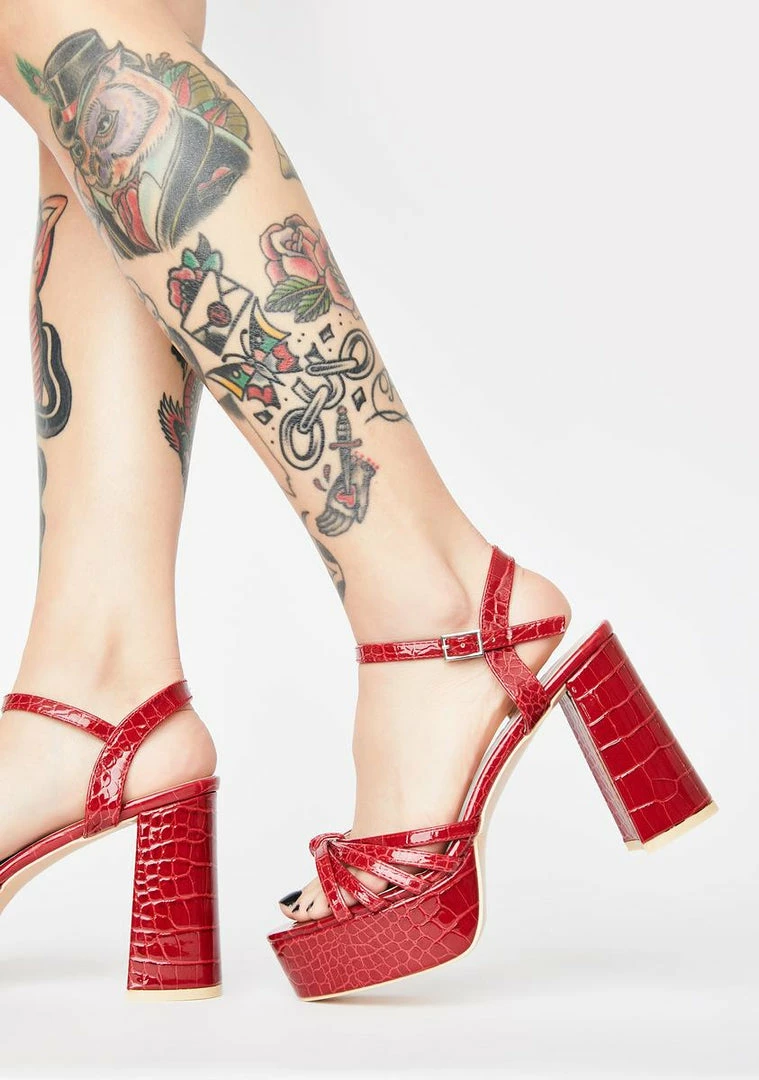cuz you were born a savage! Look bad AF in these block heels that have a strappy design, side buckle closures Nรขยย crocodile animal print all ova.