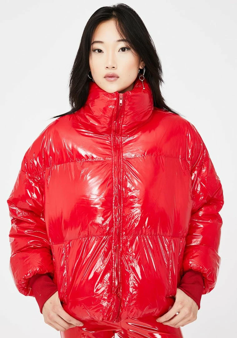 cuz u always come out lookin’ fresh, bb. Have them catchin’ ur vibe while lookin’ dope AF in this vinyl puffer jacket that zips up, has a high collar and ribbed cuffs.