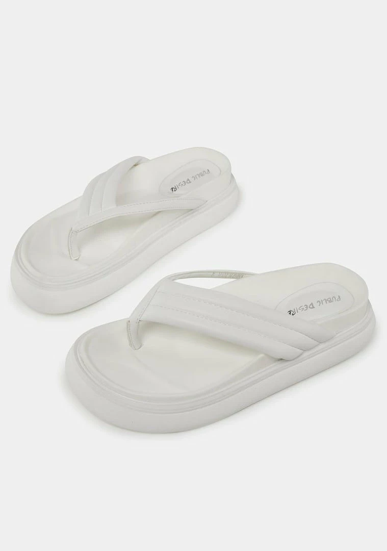 your new favorite shoes are here! These flip-flops have a vegan leather construction, thong-style vamp straps, and a low platform.