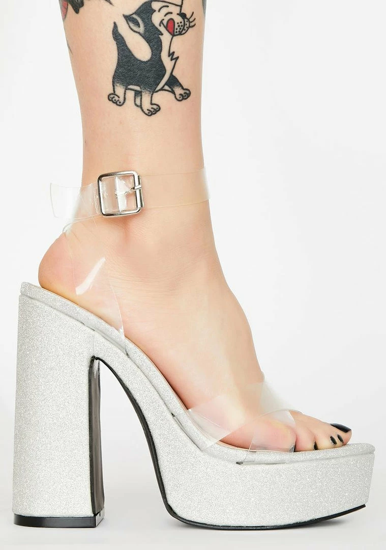 cuz glitter is a girlΓ’ΒΒs best friend! YouΓ’ΒΒre a total stunner in these platform heels that have a sparkly glitter sole, clear ankle and toe straps, and a sturdy block heel.