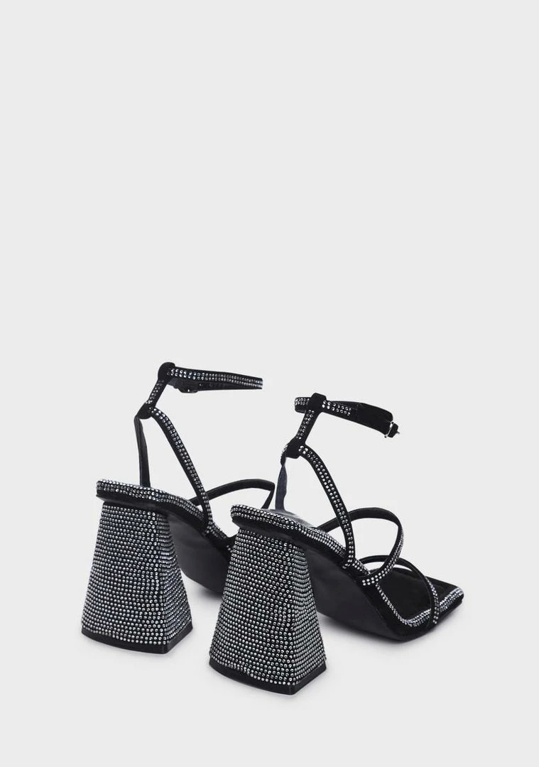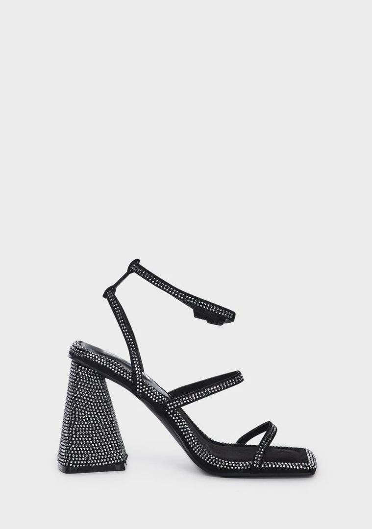 cuz you’re limitless. These heels come in a faux suede construction, with rhinestone details all over, strap details, and an ankle buckle closure.