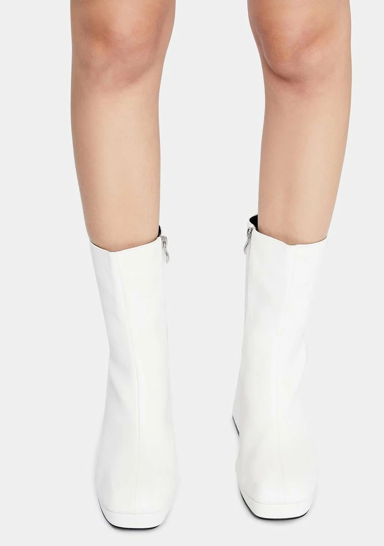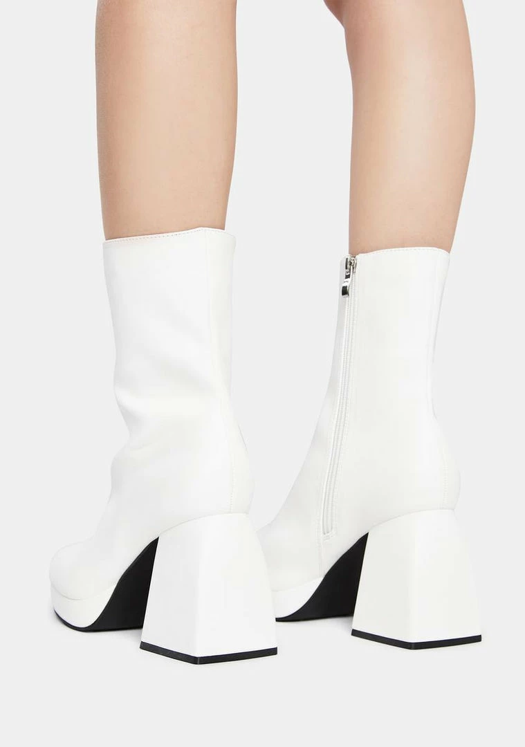 live out your wildest dreams. These ankle boots have a faux leather construction, side zipper closures, rounded toes, and flared block heels.