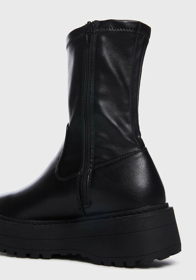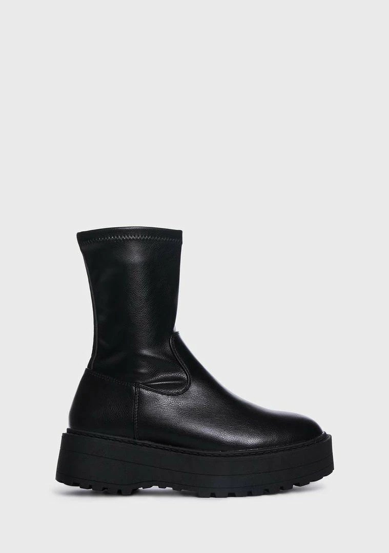 ready to wear, ready to go! These wide width/wide calf boots have a vegan leather construction, a sock boot-style shaft, and inner zip closures.